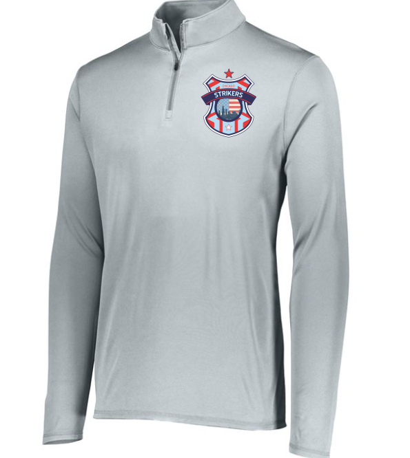 It's perfect for workouts or casual wear, providing moisture-wicking comfort and a tear-away label for added convenience. The quarter zip pullover style and set-in sleeves offer both style and functionality.